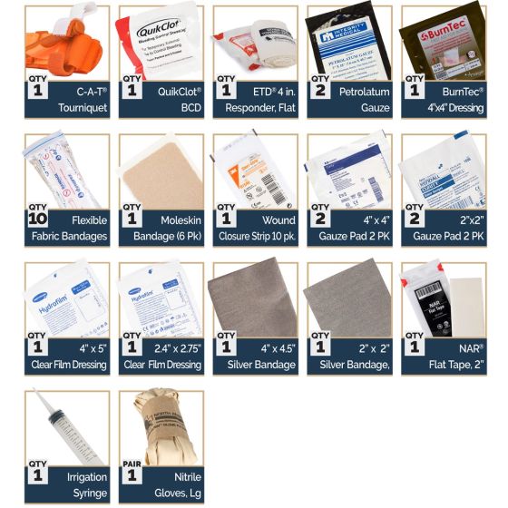 - 1 x QuickClot™ Bleeding Control Bandage