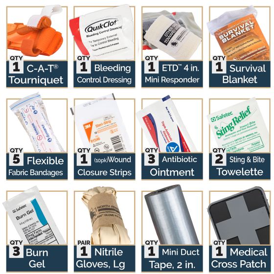 - 1 x QuikClotĀ® Bleeding Control Dressing