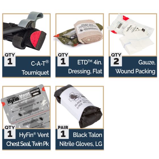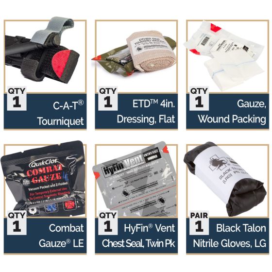 - Kits come in 3 configurations: Basic, with Combat Gauze, and Advanced
