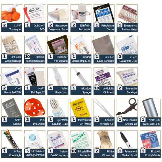 Do not leave NAR's Trail PAK behind when hitting the trail whether on foot, bike, or on your ATV/UTV. NAR's Trail Personnel Aid Kit (T-PAK) equips you to address the first aid needs of injuries ranging from major bleeding trauma and fractures to minor cuts and abrasions. The kit offers multiple carrying options from its adjustable waist belt to its MOLLE attachment capabilities. Whatever lies ahead on the trail the T-PAK ensures that you can always have the necessary equipment to save a life.